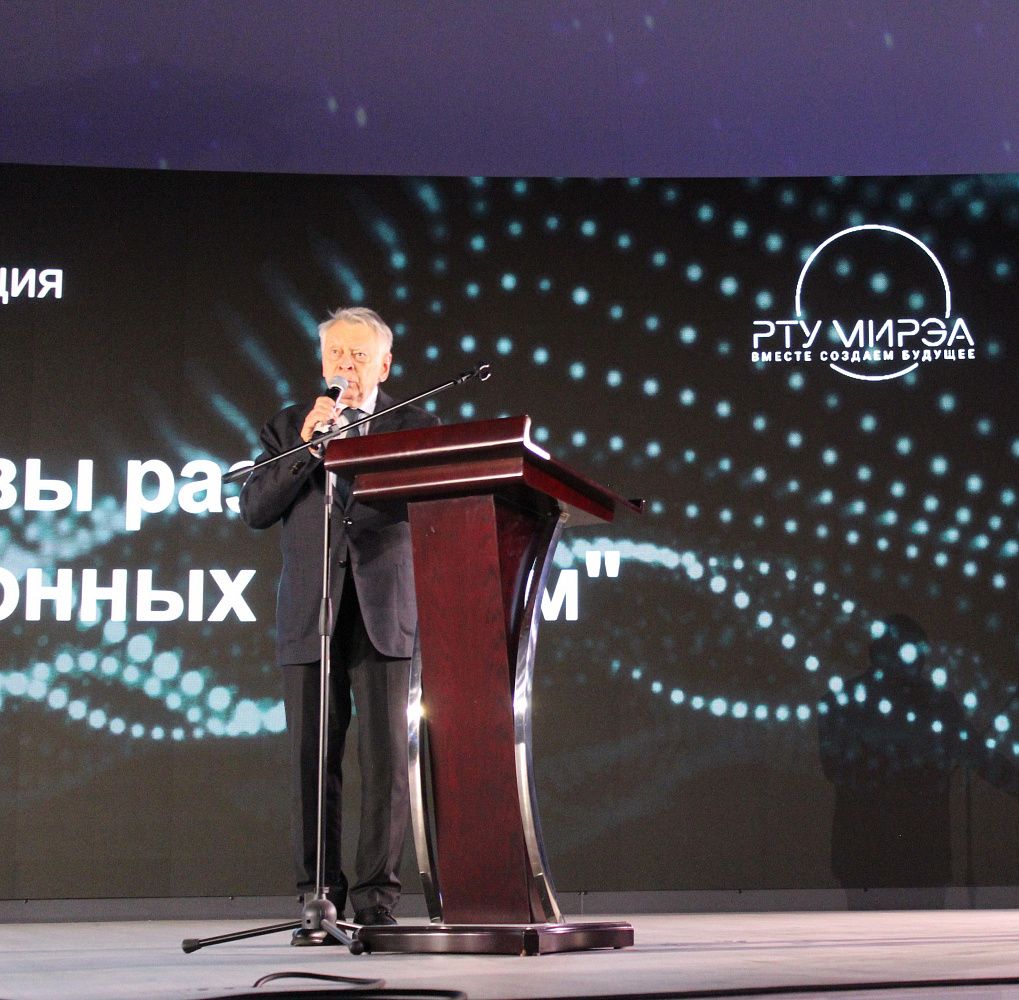 The plenary session was opened by Aleksandr Sergeyevich Sigov, RTU MIREA President and full member of the Russian Academy of Sciences, Igor Yevgenyevich Rogov, RTU MIREA Pro-Rector, and Andrei Nikolayevich Dementyev, Director of the Institute of Radio-electronics and Informatics.