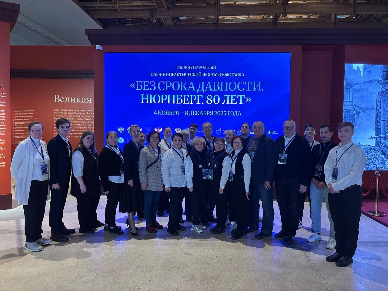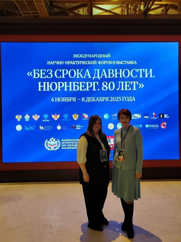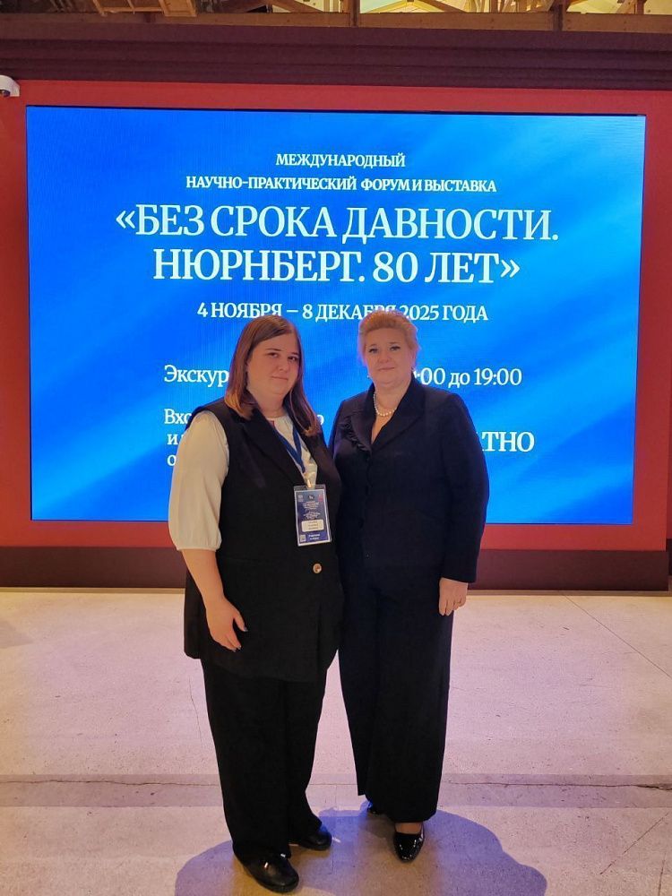 From November 20-21, the Manège Exhibition Hall hosted the international academic and practical forum titled “No Statute of Limitations. Nuremberg. 80 Years,” marking the 80th anniversary of the International Military Tribunal for major Nazi war criminals. RTU MIREA was represented by faculty from the Department of History and Documentation Studies at the Institute of Management Technologies, along with students majoring in Documentation and Archival Studies, members of the volunteer team.