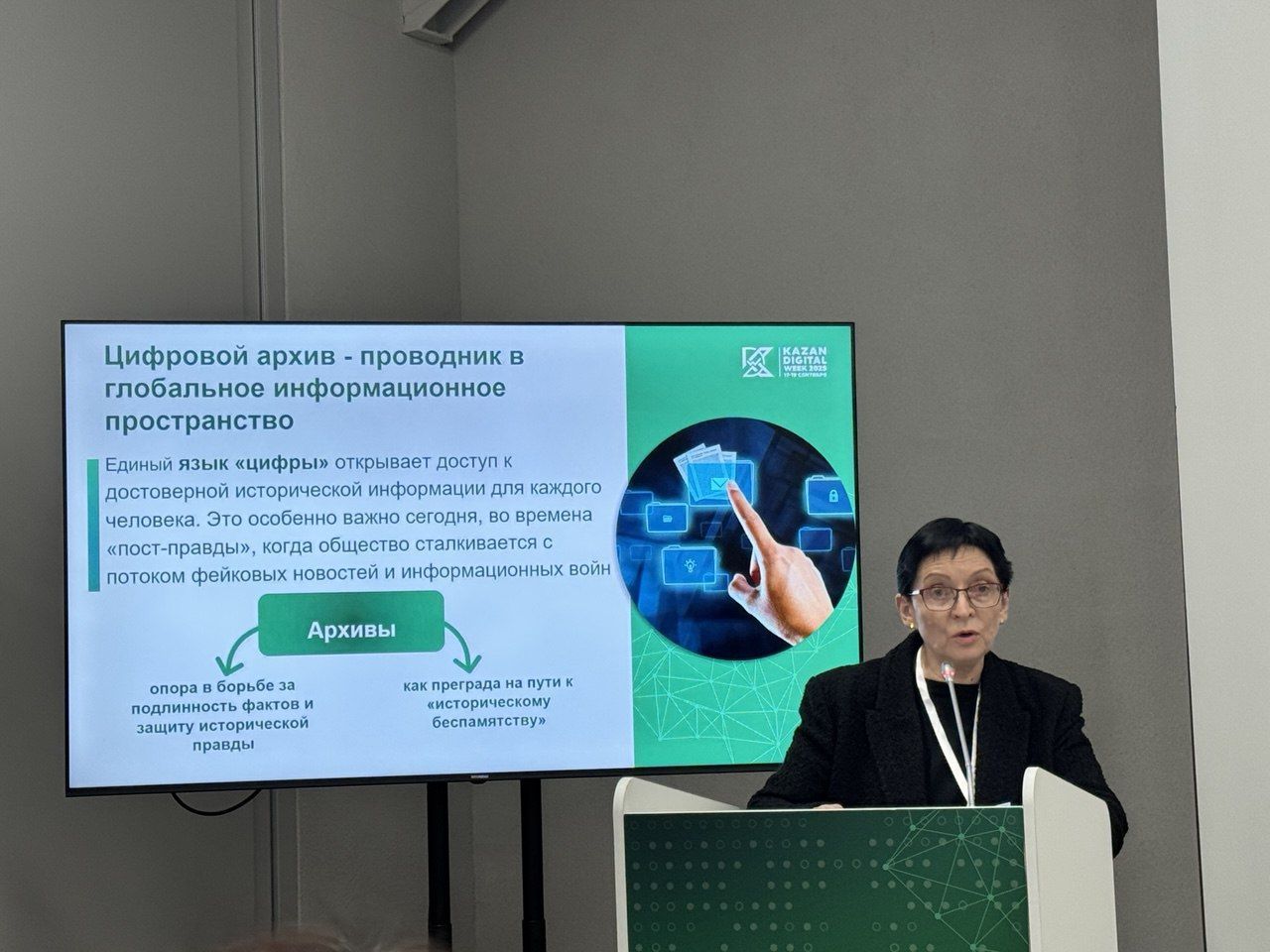 On September 18, Associate Professor Svetlana Vladimirovna Gorkush of the History and Document Science Department took part in the International Forum Kazan Digital Week 2025, where she spoke at the breakout session entitled “Digital Archive: AI as a Revolution in Preserving Documentary Heritage.” The section addressed the pressing challenges of the digital era that are fundamentally transforming the role of archives in today’s global information ecosystem.