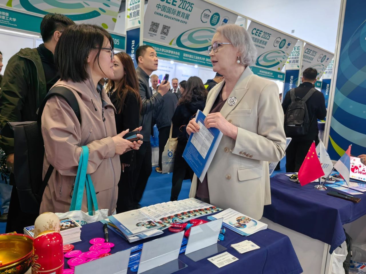On October 30, ahead of the expo opening, Irina Solunova participated in events at the Russian Cultural Center in Beijing, where staff members of Russian universities conducted one-on-one consultations, presented educational programs, and showcased the achievements of Russian higher education to Chinese student recruiting agencies, potential applicants, and parents. The center’s professional studio also streamed the interactions online to reach a broader Chinese audience.